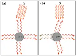 Considerando la reemisión de la energía absorbida por el grano, notar que en el primer caso (vista desde el grano) dicha reemisión es isotrópica (igual en todas direcciones), y no afecta el movimiento. Pero vista desde el Sol la reemisión es anisotrópica y los fotones se «llevan» momento angular de la partícula, pérdida que debe compensarse con el acercamiento al Sol.