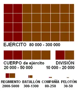 Estructura básica de un ejército. El número de componentes es variable según país, época y circunstancias.