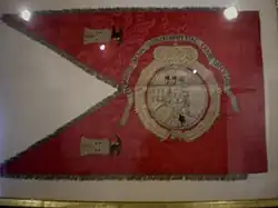 ![]() Cruz de Borgoña mostrada en los estandartes de los reales ejércitos entre 1761-1843 | ||