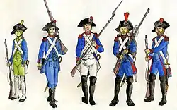 - ↑ Terry Crowdy, pages 18-19, "French Revolutionary Infantry 1789–1802", ISBN 1-84176-660-7