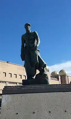 | Guerrero | Talleres Lena | Resina con fibra de vidrio | 4,33 x 1,34 x 1,34 m | El compañero de la amazona es otro guerrero, representado desnudo aunque portando un escudo y un casco, de complexión musculosa y detallada anatomía, situado en posición de contrapposto.[21] | |