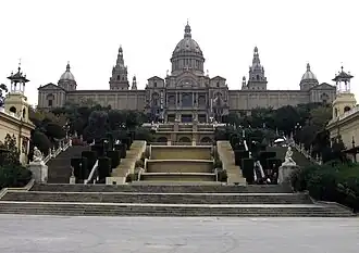 El eje de la Exposición de 1929 en Montjuïc[1] es un conjunto monumental situado entre la plaza de España y el Palacio Nacional, en la montaña de Montjuïc, Barcelona (distrito de Sants-Montjuïc). Realizado como eje principal del recinto de la Exposición Internacional celebrada en 1929, comprende un conjunto de elementos arquitectónicos, como escalinatas, jardines y un mirador, y ornamentales, como fuentes, cascadas y esculturas, situado a lo largo de una sucesión de diversas vías públicas: plaza de España, avenida de la Reina María Cristina, plaza de Carles Buïgas, plaza de Josep Puig i Cadafalch, plaza de las Cascadas, paseo de Jean C. N. Forestier y mirador del Palacio. Obra de los arquitectos Josep Puig i Cadafalch y Guillem Busquets y del ingeniero Carles Buïgas, en la decoración escultórica trabajaron diversos artistas, como Josep Llimona, Frederic Marès y Antoni Parera. El conjunto de escaleras, mirador y esculturas está inscrito como Bien Cultural de Interés Local (BCIL) en el Inventario del Patrimonio Cultural catalán con el código 08019/3070.[2]