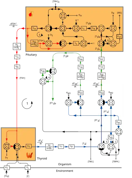 - ↑ a b Dietrich, J. W. (2002). Der Hypophysen-Schilddrüsen-Regelkreis. Berlin, Germany: Logos-Verlag Berlin. ISBN 978-3-89722-850-4. OCLC 50451543. 3897228505.