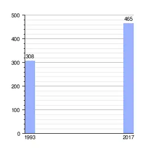 | Gráfica de evolución demográfica de Ejidos de Mariposa entre 1993 y 2017 |