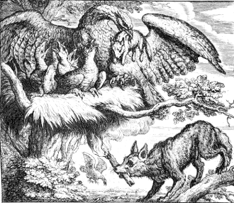Wikisource en griego contiene obras originales de El águila y la zorra.- Ilustraciones de libros de los siglos XV al XIX.