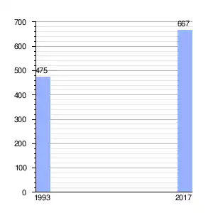 | Gráfica de evolución demográfica de El Alamor entre 1993 y 2017 |