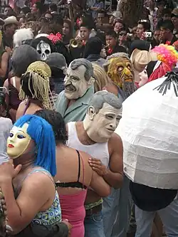 de la fiesta que tiene sus orígenes en la clase trabajadora del latifundio de la hacienda donde las personas se disfrazaban para hacer mofa de la tiranía de sus patrones; esta tradición prevalece hasta estos días, pero con un enfoque más contemporáneo, pues se hace mofa de la política y los sucesos escandalosos del momento. Las personas disfrazadas son sólo hombres, quienes se hacen acompañar por música de tamborazo, banda u orquesta para salir a bailar en la calle principal de la comunidad con la finalidad de sorprender.