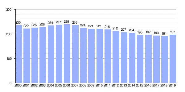 | Gráfica de evolución demográfica de El Pino (parroquia) entre 2000 y 2019 |