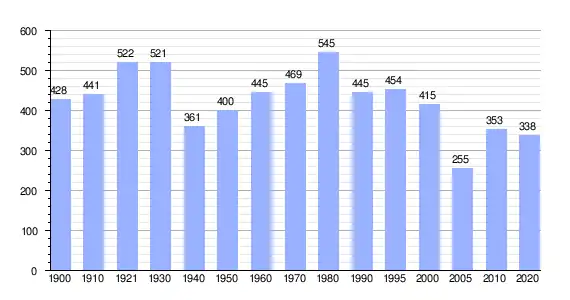 En 2020 registró una población de 338 personas, lo que corresponde al 1.61 % de la población municipal.[1][9] De los cuales 162 son hombres y 176 son mujeres.[1][9][2]