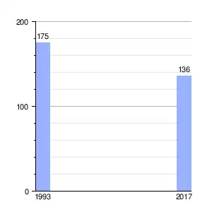 | Gráfica de evolución demográfica de El Puerto entre 1993 y 2017 |