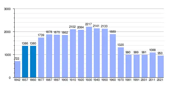 | Gráfica de evolución demográfica de El Real de San Vicente[6] entre 1842 y 2021 |