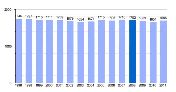 | Gráfica de evolución demográfica de El Valle (Soria) entre 1996 y 2011 |