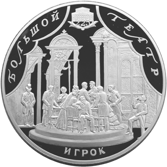 ![]() Moneda de banco rusa, 100 rublos, representando la ópera «El jugador» (Serguéi Prokófiev) | ||