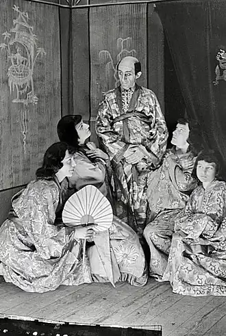 | Oficiales, mandarines, amigos, novias, sirvientes, doncellas (Coro, ballet, extras) | |||