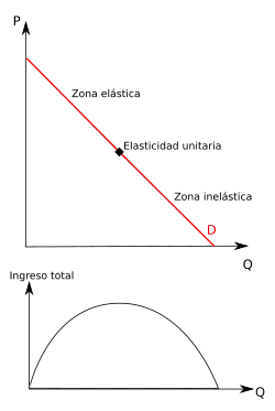De ahí, como muestran los diagramas, que el ingreso total se maximice en la combinación de precio y cantidad demandada donde la elasticidad de demanda es unitaria.[35]