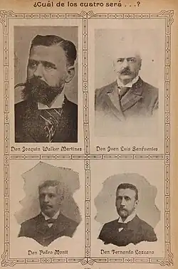 El candidato de la Unión Liberal, Pedro Montt, había intentado cinco años antes llegar a La Moneda, pero había estado abanderado por la Coalición, esta vez su partido, el Nacional, estuvo dentro de la Alianza que lo llevó a la victoria contra el liberal Fernando Lazcano. Montt también consiguió el apoyo de un grupo conservador que se hizo conocido como "Partido Conservador Montana", el que se negó a respaldar a Lazcano.