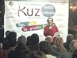 - Gustavo Ruz (ind.): Sociólogo y exmilitante del Partido Socialista.[19] El día 14 de mayo fue proclamado como candidato presidencial por el Movimiento por una Asamblea Constituyente,[20] bajo el lema «El poder constituyente eres tú». Sin embargo, solo logró recolectar 25 mil firmas de las 37 mil necesarias para inscribirse en el Servicio Electoral.[21]