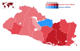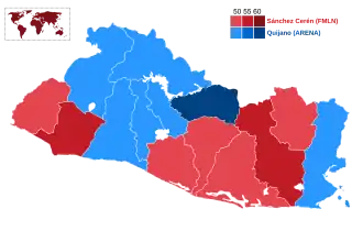 De acuerdo al Art. 216 del Código Electoral de El Salvador,[4] el Tribunal Supremo Electoral declarará como Presidente y Vicepresidente electos a los candidatos postulados por el partido político o coalición que haya obtenido la mayoría absoluta de votos válidos emitidos.
