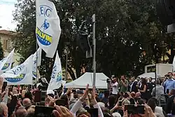 En marzo de 2019, Nicola Zingaretti fue elegido secretario del PD.[11] En abril, Zingaretti presentó un logo especial para las elecciones, que incluía una gran referencia a "Somos Europeos", un manifiesto lanzado por Carlo Calenda; y el símbolo del Partido de los Socialistas Europeos (PES).[12] Además, el PD está tratando de forjar una alianza con Artículo Uno (Art.1)[13] y partidos menores. Marzo y abril registraron más desarrollos en el lado de centroizquierda del espectro político. Bajo el nuevo liderazgo de Benedetto Della Vedova, Más Europa (+Eu) formó una lista conjunta con Italia en Común (IiC),[14][15][16] el Partido Socialista Italiano (PSI),[17] el Partido Republicano Italiano (PRI),[18][19] la sección italiana del Partido Demócrata Europeo (EDP),[20] la Alianza Liberaldemócrata por Italia (ALI)[21] y partidos menores; Izquierda Italiana (SI), el Partido de la Refundación Comunista (PRC), partidos menores y escisiones individuales de la disuelta Libres e Iguales (LeU) formaron La Izquierda (LS), una lista conjunta inspirada en el Partido de la Izquierda Europea (PEL);[22] y la Federación de los Verdes (FdV), Posible (Pos) y Green Italia (GI) formaron Europa Verde (EV) bajo la bandera del Partido Verde Europeo (EGP).[23][24] En el lado de la centroderecha, FI acogió en sus listas a candidatos de la Unión del Centro (UdC) y varios partidos menores parecidos, mientras que Hermanos de Italia (FdI) formó una alianza con Dirección Italia (DI) y grupos menores.