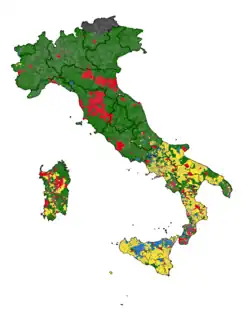 Sin embargo, después de menos de tres años desde el deslizamiento electoral de 2014, Renzi se vio obligado a dimitir tras la derrota en el referéndum constitucional y su ministro de Asuntos Exteriores, Paolo Gentiloni, fue nombrado nuevo jefe de Gobierno en diciembre de 2016.[4][5] Además, las elecciones generales de 2018 se caracterizaron por una fuerte subida de partidos populistas. La coalición de centroderecha, liderada por la derechista Liga de Matteo Salvini, surgió con una pluralidad de escaños en la Cámara de Diputados y en el Senado mientras que el antisistema M5S liderado por Luigi Di Maio se convirtió en el partido con mayor número de votos; y el centroizquierda de Renzi quedó en tercer lugar, con el peor resultado electoral de su historia.[6][7] Sin embargo, ningún grupo político o partido obtuvo una mayoría absoluta, lo que resultó en un parlamento colgado.[8] Después de tres meses de negociaciones, el 1 de junio finalmente el M5S y la Liga formaron un gobierno, con Giuseppe Conte, independiente vinculado al M5S, como Presidente del Consejo de Ministros y a Di Maio y Salvini como Vicepresidentes del Consejo de Ministros.[9][10]