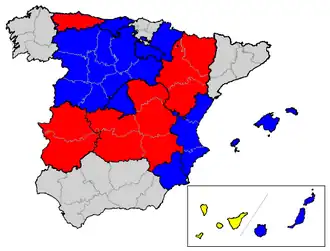 En la siguiente tabla figuran los resultados electorales de las elecciones a las cámaras legislativas de las 17 comunidades autónomas. Los partidos están ordenados de más a menos escaños obtenidos: