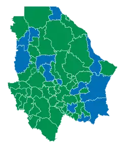 67 ayuntamientos. Compuestos por un presidente municipal y regidores, electos para un periodo de tres años no reelegibles para el periodo inmediato.
