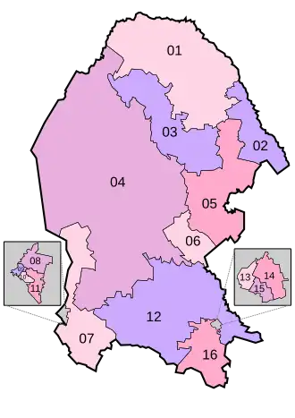 Coahuila se divide en 16 distritos electorales para la elección de los 16 diputados por mayoría relativa, los cuales cuentan con una cabecera distrital y pueden abarcar más de un municipio.[9]