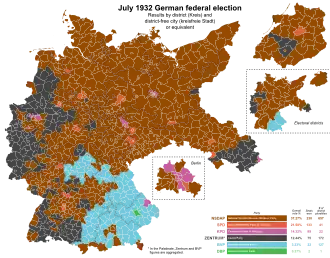 El Partido Nazi alcanzó su mayor victoria electoral hasta entonces, convirtiéndose en la fuerza política más votada, pero aun así no alcanzaba la mayoría absoluta (305 parlamentarios sobre 608) y el cargo de Canciller se escapaba de Hitler una vez más. De todas maneras, Hitler se reunió el 5 de agosto con Schleicher, a quien le demandó la Cancillería, y diversos Ministerios importantes, así como la creación de uno nuevo, Ministerio de Propaganda, para Goebbels.[13] Hitler también exigió una ley habilitante una vez que fuese nombrado Canciller, de lo contrario disolvería el Reichstag.[13]