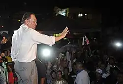 El 8 de mayo, Anwar encabezó una manifestación en el estadio de fútbol Kelana Jaya cerca de Kuala Lumpur. De acuerdo con fuentes que respaldaban al PR, participaron 120.000 personas.[137] Dado que el estadio generalmente suele albergar a aproximadamente 25.000 personas, los escépticos estimaron que el número de participantes varió de 64.000 a 69.000.[138] Partidarios de la oposición afirmaron que la elección fue una farsa.[139]