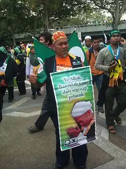 ↑Aunque el Pakatan Rakyat era una coalición informal, no registrada legalmente, los escaños eran distribuidos entre sus tres componentes de tal modo que ejercían como una fuerza política unificada.