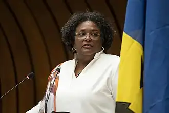 Mia Mottley, del BLP, se convirtió en la primera mujer barbadense en encabezar un partido importante en una elección general.