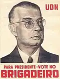 La derechista UDN lanzó la candidatura del brigadier Eduardo Gomes, héroe del 18 del Fuerte y Jefe de la Fuerza Aérea Brasileña. El 'Brigadier o Brigadeiro', como se le conocía popularmente, era entonces una figura pública de inmenso prestigio, visto como un luchador por la libertad y la democracia en Brasil, y al comienzo de la campaña electoral, era considerado el franco favorito para ganar las elecciones. Sin embargo, su personalidad distante, su aire elitista y su falta de oratoria se volvieron en su contra. Era un católico ferviente y el hecho de ser 'soltero' dio lugar al eslogan más entretenido de las elecciones de 1945: '¡Vota Brigadeiro, que es guapo y soltero!'. De esta forma, las señoras del comité electoral de Brigadeiro elaboraban bombones y los distribuían en los mítines y reuniones junto con el personal de campaña.