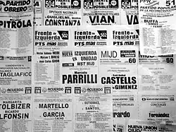 - ↑ La coalición encabezada en general por una facción mayoritaria del Partido Justicialista, el Partido de la Victoria, sectores disidentes del radicalismo, el Frente Grande, el Partido Intransigente, y el Partido Progreso Social: