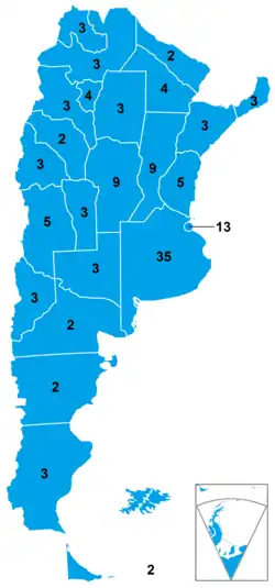 - ↑ De acuerdo con el Artículo 45 de la Constitución Nacional[2] y los datos del Censo 2022, la cantidad de diputados en la Cámara Baja debería ser 359, no 257. Sin embargo, el número de legisladores no se ajusta desde la recuperación de la democracia en 1983.[3]