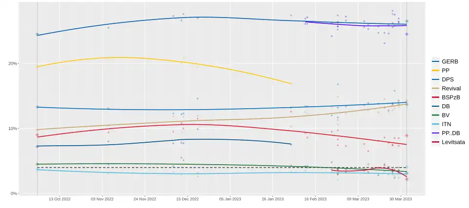 - ↑ «Gerb-SDS heading for slim win in Bulgaria’s snap general election | bne IntelliNews». www.intellinews.com (en inglés). 2 de abril de 2023. Consultado el 11 de abril de 2023.