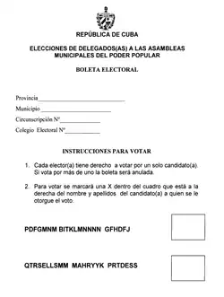 - ↑ «Validados los 11 424 delegados electos en la primera vuelta». Granma. 24 de abril de 2015. Consultado el 25 de abril de 2015.