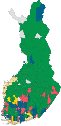 - ↑ a b c «Kuntavaalit» [Elecciones Municipales]. vaalit.fi (en finés). Ministerio de Justicia de Finlandia.