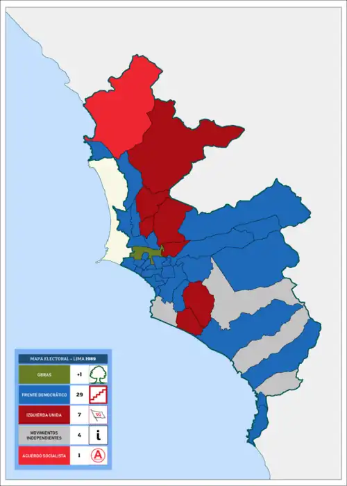 | Elecciones municipales de Lima de 1989 Municipalidad Metropolitana de Lima | |||||||||||