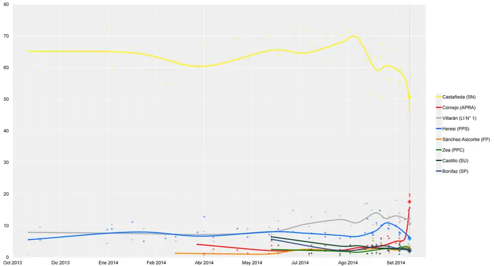 - ↑ «Ipsos Perú: Castañeda sigue liderando encuesta de intención de voto en Lima». americatv.com.pe. 19 de septiembre de 2014.