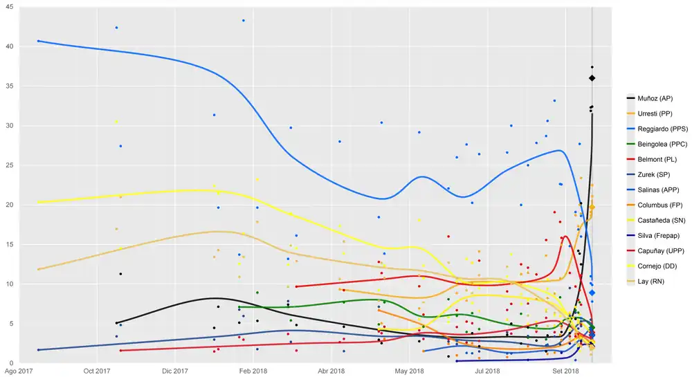 - ↑ a b «Reggiardo mantiene ventaja». ipsos.com. 20 de agosto de 2018. Consultado el 22 de enero de 2022.