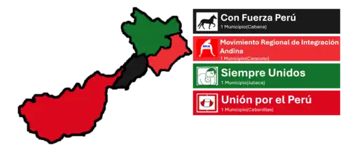 | Cabana | Patricio Colca Huaranca | Frente Unido Progresista | Cesario Vilca Quispe | Con Fuerza Perú | ||