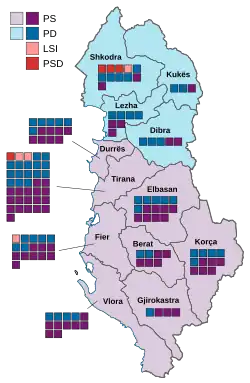- ↑ «DEMOKRA - Sistemi I Integruar I Informacionit Zgjedhor I Komisionit Qendror të Zgjedhjeve». results.cec.org.al (en albanés). Consultado el 17 de marzo de 2021.