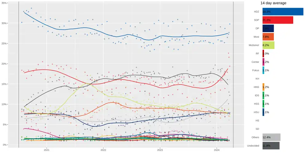 En 2023, se informó que el HDZ se estaba preparando para celebrar elecciones en abril de 2024, dos meses antes de las elecciones al Parlamento Europeo. En conversaciones con varios miembros de alto rango del HDZ, la lista Jutarnji informó que Andrej Plenković obtendría ventajas con las que se presentará ante los electores y pedirá otro mandato de primer ministro el próximo año, para que las elecciones se puedan celebrar antes de las vacaciones de Semana Santa de 2024.[37]
