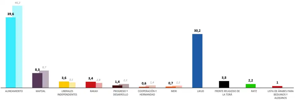 51 Alineamiento 39 Likud 10 Mafdal 5 Frente Religioso de la Torah 4 Liberales Independientes