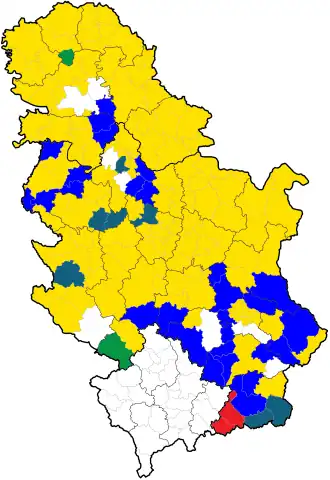 | Partido Radical Serbio | 1.219.436 | 29,46 | 78 | -3 | |