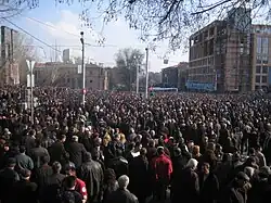 - ↑ a b c d Kocharyan promesas para asegurar orden público en Armenia Archivado el 8 de marzo de 2008 en Wayback Machine.