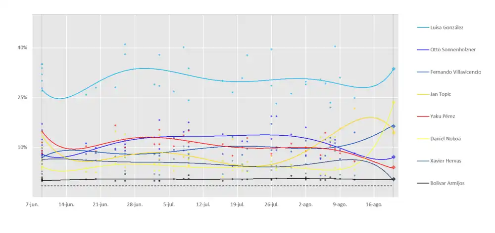 - ↑ Telégrafo, El (13 de julio de 2023). «Campaña electoral para binomios presidenciales arrancará el jueves, 13 de julio de 2023». El Telégrafo. Consultado el 13 de julio de 2023.
