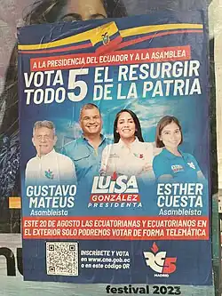 - ↑ https://www.eluniverso.com/noticias/politica/elecciones-presidenciales-2023-consejo-nacional-electoral-candidatos-campana-electoral-luisa-gonzalez-nota/