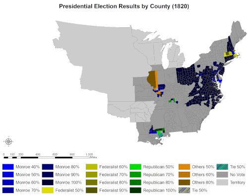 Los federalistas recibieron una pequeña cantidad del voto popular a pesar de no tener candidatos electorales. Incluso en Massachusetts, donde la lista de electores federalista salió victoriosa, los electores emitieron todos sus votos por Monroe. Esta fue la primera elección en la que los republicanos demócratas ganaron en Connecticut y Delaware.[6]