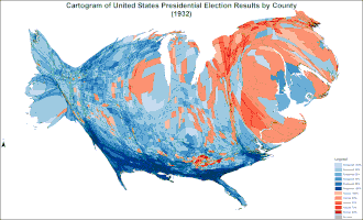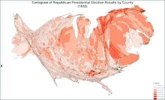Cartograma del porcentaje del Partido Republicano por condado. |
